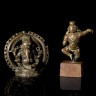 INDE - XVIIIe/XIXe siècle Deux statuettes en bronze, l'une représentant Ganesh assis, l'autre Krishna debout dansant, incrusté de cuivre doré. H 8 et 7,5 cm