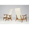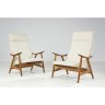 Illum Wikkelsø (1919-1999) Pair of armchairs Solid oak wood, wool and leather Edited by Søren Willadsen Møbelfabrik Model created circa 1950 H 100 x L 78 x W 75 cm