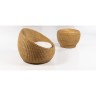 Isamu Kenmochi (1912-1971) Set of one armchair and a side table Rattan and fabric Model created in 1960 H 74 × L 81,5 × W 95 cm (armchair) H 46,5 × Ø 63 cm (side table)