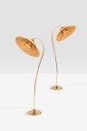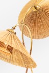 Pair of floor lamps Brass, rattan and wood slats Edited by Itsu Stamped with 'ITSU' Model created circa 1955 H 147ר 57cm