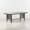 Jacques Carlu (1890-1976) Table de milieu Fer battu et travertin Date de création : 1932 H 73 × L 200,5 × P 100 cm Bibliographie : Art et Décoration, chaise au modèle reproduit, 1932, p.109