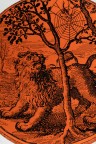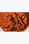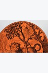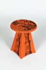 The Mysterious Embroideries of the Small Orange Pedestal Table, 44.5 x Ø 38 cm