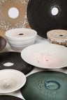 Set of four bowls Enameled porcelain Signed and dated on reverse 'Jean Girel' Models created in 2006 and 2011 H 7 x D 26.5 cm H 5 x D 16 cm H 10 x D 28.5 cm H 4.5 x 15 D cm