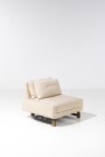'Host I' armchair Stained solid oak, lacquered patinated brass and textile Edition Atelier Tortil Model created in 2023 H 64 x 82 x 84 cm Provenance: acquired directly from Atelier Tortil