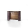 Tôle d'acier pliée, laquée (peinture d’origine) chêne et placage de chêne et aluminium Les bornes faisaient également offi de gaines de chauffge à air pulsé par le sol. Date de création : 1955 H 150 × L 211 × P 56 cm Modèle créé pour le Restaurant du Centre National d'Enseignement Technique (CNET) à Cachan