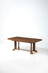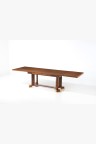 Table Walnut and gilded bronze Model created circa 1950 H 72 × L 182 (282 with extensions) × W 92 cm Bibliography: Archives Jean Royère, Galerie Jacques Lacoste & Galerie Patrick Seguin, sketch n°3.341 for a similar model