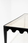 'Ondulation' table Lacquered wood, caning and glass Model created circa 1950 H 74×L 176×W 90cm Provenance: Private collection, Cairo, Egypt Bibliography: 'La Maison Française', n°61, 1952, similar model with full tabletop p. 9