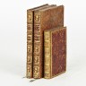 Jehan de MARCONVILLE. De l’heur et malheur de mariage : Ensemble les loix connubiales de Plutarque... Lyon, Rigaud, 1602. In-16, veau porphyre, triple filet doré, dos lisse orné (Reliure du XVIIIe). Édition revue et augmentée de ce curieux traité sur le mariage qui en décrit l’histoire, le régime juridique, les bienfaits, les causes de nullité, quelques anecdotes savoureuses, bref un traité très actuel… Une vignette de titre. La première édition avait été donnée en 1573 par Benoist Rigaud. Exemplaire un peu court dans la marge supérieure. On joint : Jean-Jacques BURLAMAQUI. Principes du droit naturel. Genève, Barrillot, 1748. 2 volumes in-8, veau marbré, dos à 5 nerfs ornés (Reliure de l’époque). Seconde édition de cet ouvrage dans lequel l’auteur recherche les règles que la seule raison prescrit aux hommes selon le droit de la nature. Travail de vers et manques aux coiffes.