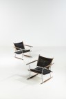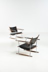 Pair of 'Conical-Stick chairs' Wood, fabric and metal Edited by Richard Nissen Model created in 1966 H 70×L 66×W 68cm Bibliography: 'Scandinavian Design', C. and P. Fiell, Taschen, 2002, model illustrated p. 12