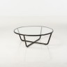 ƒ Joaquim Tenreiro (1906-1992) Mesa de centro Table basse Bois courbé et verre Date de création : circa 1960 H 33 × Ø 98 cm Bibliographie : André Se frin, Tenreiro, catalogue raisonné, Éditions Bolsa de Arte, Rio de Janeiro, 1998, page 51.