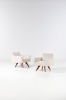 Pair of 'Chica' armchairs Bent-laminated wood and fabric Edition Moveis Artisticos Z Model created circa 1950 H 70 x W 69 x P 83 cm