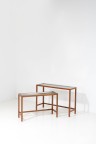 Set of two nesting consoles, model n°548 Cherry wood and brushed metal Edited by Svenskt Tenn Model created circa 1930 H 77 × L 115 × W 39 cm H 65 × L 100 × W 35 cm