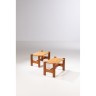 Josef Frank (1885-1967) Model 2242 Pair of stools Teak and caning Svenskt Tenn edition Creation date: circa 1940 H 35,5×L 60,5×P 32,5 cm