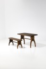 Table and bench Stained pine wood Model created circa 1920 Table : H 72 × L 120 × W 68 cm Bench : H 47 × L 120 × W 30 cm