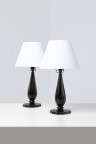 Pair of table lamps Bronze and fabric Artist's pictogram, numbered '2256' and located 'Denmark', and one inscribed with 'Erindring om Fru Andersen' Model created circa 1930 H 33ר 17cm (with lampshade: H 57ר 32cm)