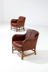 Pair of armchairs, model no. 4396 Oak, leather and brass Edited by Rud. Rasmussen Model created circa 1930 H 80×L 64×W 75cm Bibliography: 'Scandinavian Design', C. and P. Fiell, Taschen, 2002, model illustrated p. 354