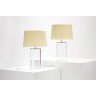 Karl Springer (1931-1991) Pair of lamps Lucite, brass and fabric Model created in the 1980s H 81 × Ø 51 cm