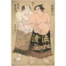 Katsukawa Shunsho (1726-1793) Oban tate-e, portrait des sumo du groupe de l'Ouest: Arakumami Nemon et Namiwatari Yotoshichi aussi connu sous le nom d'Itsukushima Sekiemon debout. Signé Shunsho ga. 38,4 × 25,1 cm (Les bords collés sur carton) Provenance : Proviendrait de la 2e vente Manzi, 1920, n°146