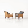 ƒ Kipp Stewart (né en 1928) Paire de fauteuils Noyer, rotin et velours Edition Drexel Furniture Date de création : vers 1950 H 81 × L 60 × P 55,5 cm