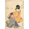 Kitagawa Utamaro (1753-1806) Oban tate-e de la série "Tosei onna fuzoku tsu", guide de style des femmes contemporaines, okubi-e d'une jeune femme, Machiya no mekake. Signé Utamaro fude, cachet de censeur kiwame, cachet d'éditeur Murata. 38,1 × 25,5 cm (Petites restaurations, taches)