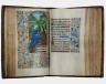 LIVRE D'HEURES SELON L'USAGE DE L'EGLISE DE PARIS. Paris atelier de Maître François , vers 1475. In-8, maroquin rouge, décor dans le genre Du Seuil sur les plats, dos à 5 nerfs orné, dentelle intérieure, tranches dorées (Reliure du XVIIème siècle). Manuscrit enluminé à l'usage de Paris, sur parchemin, de 294 feuillets non foliotés (163 x108 mm, justification 82 x 52 mm), réglure à l'encre rouge, 14 lignes par page. Annotations marginales de la fin du XVIeme ou du début du XVIIeme siècle, en partie rognées lors de la dernière reliure, et concernant divers offices (f. 13v-14v, 15v, 16v, 17v-18, 19-20, 21v, 23rv). Composition. 2 feuillets blancs, 294 feuillets (avec f. 34-35v et 129-130v blancs), 2 feuillets blancs. La reliure est trop serrée pour autoriser un décompte des cahiers qui ne sont pas signés. On notera cependant trois manques : en tête des Vêpres et des Heures de la Croix, et l'arrêt brutal, au verso du dernier feuillet, d'une oraison pour La Paix. Contenu. f. 1-12v° : Calendrier continu, en français. f. 13-22v : Péricopes évangéliques, st Jean (f. 13-15v), st Luc f. 16-18), st Mathieu (f. 18v-20v), st Marc (f. 21-22v). f. 23-34 : Prières à la Vierge à l'adresse d'un homme. Obsecro te (23-28). - O intemerata (f. 28v-34). f. 34v : ANTONIVS - ANTHOINE - 1594 (note moderne). f. 35rv : Blancs. f. 36-128 : Heures de la Vierge, selon l'usage de l'Église de Paris. - Matines (f. 36-69) ; In laudibus (f. 69v-84v) ; Primam (f. 85-93) ; Terciam (f. 93v-99) ; Sextam (99-105v) ; Nonam (f. 106-111v) ; Vesperas (f. 112-120v) (le début manque : " // nostri in atriis tuis iherusalem ") ; Completorum (f. 120-128v). f. 128v : LON TANC A DIEU (répétée 3 fois, la dernière est datée : " 1413 ") (note moderne). f. 129-130v : Blancs. f. 131-156v : Psaumes de la pénitence, avec litanies (f. 148v-155v). f. 157-162 : Heures de la Croix (le début manque : [Ad tertiam. Hymnus] " // crucifige clamitant hora tertiarum ". f. 162v-170v : Heures du Saint-Esprit. f. 171-234v : Office des morts, selon l'usage de l'Église de Paris. f. 235-236v : Mémoire de ste Elisabeth. f. 237-252v : Prières à la Vierge. Doulce dame de misericorde, mere de pitie (f. 237-247v) ; Stabat mater (f. 247v-251) ; Salve regina (f. 251-252v). f. 253-279v : Prières au Christ. Doulx dieu, doulz père, sainte Trinite (f. 253-261) ; Loroyson sainct Pierre de Luxembourg (f.261-273) ; Quant on veult recevoir nostre seigneur (f.273-275v) ; Passio domini Iesu Christi secundum Iohannem (f. 276-279v). f. 280-294 : Les Suffrages (rubriques en français). De la Trinite (f. 280) ; De s. Jehan baptiste (f. 281) ; De s. Jehan evangeliste (f. 281v) ; De s. Pierre (f. 282) ; De saint Pol (f. 282v) ; De s. Denis (f. 283v) ; De s. Sebastien (f. 284v) ; De s. Martin (f. 285) ; De st Nycolas (f. 286) ; De s. Claude (286v) ; De sainte Anne (f. 288) ; De sancta katherina (f. 289) ; De ste Barbe (290v) ; De ste Genevieve (292v) ; De tous sains et sainctes (f. 293) ; De la paix (f. 294-294v), la fin manque : " Actiones nostras quesumus domine aspirando // ". Décoration. 19 peintures, dont une petite, illustrent ce manuscrit. Deux peintures ont été soustraites, engendrant par là des lacunes textuelles, la première en tête des Vêpres (probablement une Fuite en Égypte), l'autre en tête des Heures de la Croix (probablement une Crucifixion). L'ensemble de la décoration présente une grande unité de style, donc l'intervention d'un seul artiste. Ce manuscrit a été décoré dans le proche entourage de Maître François, très probablement dans son atelier même. On désigne sous le nom de Maître François un enlumineur qui fut actif à Paris entre 1462 et 1480. Le nom de François a donné lieu à de multiples hypothèses, toutes peu concluantes … François Fouquet … Saturnin François … François Colombe … toutes identifications incompatibles avec l'activité évidemment parisienne de miniaturiste et sa qualité de chef d'un atelier très achalandé et fournissant en permanence les grands bibliophiles de la cour et les notables de la capitale entre 1460 et 1480 … . Le considérable succès commercial de Maître François l'a conduit à s'entourer de nombreux imitateurs qui ont reproduits ses formes et ses compositions dans un style plus sommaire… (François Avril et Nicole Reynaud. Les manuscrits à peinture en France. 1440-1520 - p. 45). C'est entre 1470 et 1480 qu'ont été exécutés la peinture et la décoration de ce manuscrit. Le caractère, l'esprit, le style du maître parisien sont ici très présents. On y trouve d'abord un goût prononcé pour les scènes d'intérieurs dans un décor à peu près unique. 10 peintures sur 18 sont situées en intérieur : une salle presque toujours carrelée, dont la profondeur est coupée par des paravents ou par un dais, au fond de laquelle s'ouvrent de hautes fenêtres voûtées. Les personnages sont râblés, presque trapus, et semblent parfois tassés dans leur position assise. Les visages sont ronds, avec de larges fronts, des sourcils épais et des bouches charnues. Le traitement des vêtements dans leurs plis est plus anguleux que souple, mais d'une amplitude qui estompe la forme des corps. Tout cela rappelle fortement la manière de Maître François, et c'est pourquoi il convient sans doute d'attribuer la peinture du manuscrit à la patte d'un de ses adeptes qui, éblouis par la notoriété du Maître, ont reproduit ses formes et ses compositions. Si la peinture de ce manuscrit n'est pas due à Maître François, elle est l'œuvre d'un artiste qui était suffisamment proche de lui pour lui emprunter ses cartons, et travailler dans le même esprit. Il a un goût prononcé pour les scènes d'intérieur et son utilisation abondante, mais jamais excessive, des hachures à l'or donne à ses peintures une tonalité sourde que l'on retrouve rarement dans la peinture de Maître François. L'auteur de la peinture développe ici le programme iconographique a