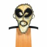 Élizabeth Garouste Silla Camara Fer peint et raphia, masque 111 x 26 x 30 cm. “Hommage aux femmes africaines qui se réunissent pour peindre leurs habitations en terre avec leurs mains pour pinceaux et les murs pour toiles. Elles réalisent de véritables tableaux. La chaise est habillée de raphia en référence à la chaise Prince impérial que j'avais réalisée pour la Galerie Néotu en 1985 et d'un masque en fer peint.”