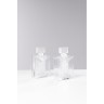 Two covered flasks in moulded-pressed glass, partially frosted, with decoration of the three graces