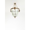 A circular ormolu and glass lantern, decorated with a frieze of hearts, a garland of laurel leaves and ram heads, the three-branched li