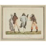 " Le suprême Bon Ton" Trois estampes en couleurs A vue: 21 x 26 cm ( encadrées, rousseurs) On joint " Partant pour Saint- Cloud" Est...