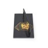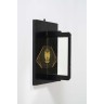 Support and articulated frame in painted wood, mirror, magazine cut-out collage