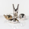 Lino Sabattini (né en 1925), Théière Boule, vase, pique flurs, louche Saulier Vers 1950 Métal argenté Edition Christofl H 12 ; H 30 ; H 12 et L 27 cm