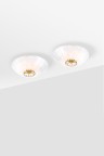 Pair of ceiling lamps, model n°1073 Brass and glass Edited by Orno Stamped with 'Orno' Model created circa 1950 H 15 × Ø 55 cm Bibliography: Orno commercial catalogue n°53, 1951, p. 31