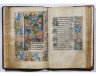 Livre d'heures selon l'usage de Paris. - Manuscrit. Paris, vers 1475. In-8, veau marbré, dos à 5 nerfs, tranches dorées (Reliure anciennes avec les gardes renouvelées). Manuscrit enluminé à l'usage de Paris, sur parchemin, de 134 feuilles non foliotés (195 x 128 mm Justification 10,5 x 6,5 mm) + 2 feuillets de garde au début et 2 à la fin. Réglure à l'encre rouge, 17 longues lignes par page. Composition. 2 ff. de garde (f. A-B) ; I6-II6 (f. 1-12), III8 (f. 13-20), IV6 (f. 21-26), V8 -IX8 (f. 27-66), X5(6-1) le premier fol. du cahier manque (f. 67-71), XI8-XII8 (f. 72-87), XIII7(8-1) le premier fol. du cahier a été coupé (f. 88-94), XIV8-XIX8 (f. 95-134) ; 2 ff. de garde (f. C-D). Contenu. f. A-B : feuillets de garde utilisés pour l'enregistrement d'événements à caractères familiaux, " livre de raison " (XVIIe-XVIIIe s.). f. 1-12v : Calendrier continu en français. f. 13-19v : Les évangiles. f. 19-26v : Prières à la Vierge. f. 27-71v : Heures de la Vierge : matines (f. 27-36v) ; laudes (f. 37-46) ; prime (f. 46v-51) ; tierce (f. 51v-55) ; sexte (f. 55v-58v), none (f. 59-62), vêpres (f. 62v°-67v), complie (68-71v) le début manque. f. 72-87v : Psaumes de la pénitence, avec litanies (f. 83-86v). f. 88-90 : Heures de la Croix (le début manque). f. 90v°-93 : Heures du Saint-Esprit. f. 93v-133 : Office des morts f. 133v-134v + garde C-D : Prières, suffrages des saints et saintes Michel, Nicolas, Claude, Catherine et Geneviève (additions plus tardives, fin XVe s.), et " livre de raison " (XVIIe-XVIIIe s.). DECORATION. TOUTES LES PAGES SONT ORNEES DE LARGES BORDURES EXTERIEURES délimitées par la hauteur du texte et constituées de grandes feuilles d'acanthes bleues et or, de tiges rouges portant des feuilles vertes et des fleurs rouges, roses ou bleues et des fruits rouges. CE MANUSCRIT COMPREND 10 GRANDES PEINTURES ET 5 TABLEAUTINS. Les 10 grandes peintures représentent dans l'ordre Saint Jean à Patmos ; L'Annonciation ; La Nativité ; L'Annonce aux bergers ; L'Adoration des mages ; La Présentation au Temple ; La Fuite en Égypte ; David priant ; La Pentecôte ; L'Office des morts. Les 5 tableautins représentent dans l'ordre les saints évangélistes Luc, Matthieu et Marc avec leur symbole ; une Pièta et la Vierge et l'Enfant. Les mêmes bordures ornent les peintures sur les 3 côtés. Ces bordures présentent le même caractère que les bordures extérieures de l'ensemble du volume et ne s'en distinguent que par l'usage de l'or sur les fonds, soit complet comme pour l'Annonciation, soit par une alternance de zones striées, blanches et or (L'Adoration des mages), ou l'introduction de zones plus nuageuses, voire ondoyantes (St Jean à Patmos). LA PEINTURE ET LA DECORATION DU MANUSCRIT PERMETTENT DE SITUER L'EXECUTION DE CE MANUSCRIT A PARIS DANS UN MILIEU PROCHE DE CELUI DE MAITRE FRANÇOIS. On notera à ce propos que l'enluminure de la Fuite en Egypte représente dans le fond la chute des idoles païennes à l'approche de la Sainte Famille, thème récurrent dans l'atelier de Maître François et de ses continuateurs. Ces peintures sont dues à un artiste de qualité, bon peintre et très bon portraitiste (visages ronds expressifs), utilisant une palette composée surtout de brun, de bleu, et de rose, plus rarement rouge, avec un usage abondant de hachures à l'or pour souligner le drapé souvent cassé des robes et tentures. Trois peintures retiennent l'attention : l'Annonciation avec sa bordure à l'or, David priant pour l'expression de son visage et sa tête coiffé d'un chapeau rose sur lequel est plantée sa couronne et l'Office des morts pour l'expression du visage du prélat entraîné par la mort. Il est possible de situer ce travail à Paris, mais les belles bordures confèrent à l'ensemble un aspect rouennais. On notera enfin que la Nativité a probablement été en partie retouchée et repeinte. L'artiste qui a œuvré ici s'intéresse avant tout aux personnages. Alors que les décors sont traités assez rapidement. Le plus souvent c'est un décor intérieur sans grand relief ; les paysages sont assez rares, et sans grande profondeur de champs. Les mises en scène sont sans grande originalité et l'effort porte surtout sur les personnages. Enfin les principales sections du manuscrit jouissent, sous la peinture, d'une initiale de grande qualité, peinte de couleur bleue rehaussée de blanc, sur un fonds or agrémenté d'un fruit ou d'une fleur rouge. La plus belle est celle qui introduit Laudes. Toutes les autres initiales sont peintes à l'or sur des fonds alternativement bleus et lie de vin rehaussés de blanc. Le reste de la décoration consiste en bouts de ligne de même style. Provenance. La provenance de ce manuscrit pose des problèmes. La liturgie - heures de la Vierge, office des morts ? est parisienne. Le calendrier, continu et écrit en français, est lui aussi parisien, en dépit de quelques inexactitudes ; il semble convenir à un usage est-parisien, avec la présence soulignée de l'évêque de Meaux, Faron (12 janvier, 2 mars et 28 octobre), de sa sœur, l'abbesse de Farmoutiers, Fare (honorée le 7 décembre à Champeaux, Seine-et-Marne), de la reine Bathilde (30 janvier). Mais on notera aussi la présence étonnante de l'évêque de Reims Romain (28 février), de l'évêque de Bourges Ursin (30 décembre), et la commémoration de la translation des reliques de Germer depuis Beauvais à Saint-Germer-de-Fly, Oise (21 mai). Enfin, les notes portées à la fin du XVIe et au XVIIe siècle situent alors la présence de ce manuscrit dans le sud la région parisienne. Le manuscrit est passé, probablement pour des raisons matrimoniales, entre les mains des familles Dubois (1626-1661), Le Roy (1661-1749), Charlot (1749-fin XVIIIe s.), Méalin (1799-1811), familles demeurant toutes entre les paroisses de Moigny-l'École (Essonne, arr. d'Evry, canton de Mennecy) et de Saint-Maurice-sur-Fessard (Loiret, arr. de canton de Montargis), de Marsai