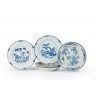 Lot comprenant cinq assiettes en porcelaine de chine bleu et blanche. L 23 cm (Accidents). Joint : Une assiette en faïence de Delft,...