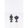 Lot de deux sceaux à cacheter dont un à décor ajouré de fleur de lys et d'aigle et l'autre de forme chantournée à décor émaillé. Matrices monogrammées EC et CR(?). H entre 4,5 cm et 5,5 cm.