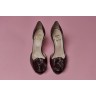 PAIRE d'ESCARPINS en cuir bordeaux, bouts ouverts sous fleurs