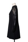 Black silk crepe and leather dress
