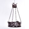 Lustre en fer forgé de forme circulaire à quatrepiques, cercle repercé de trilobes en quinconce
