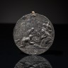Médaille en étain représentant la Nativité aux Bergers sur fond d'architecture avec le Baptême du Christ sur la gauche ; deux écus entre deux cartouches à la partie inférieure. Trou de suspension. Belle qualité de fonte. Allemagne du sud, Nuremberg ?, vers 1570 Ø 7,2 cm (très légère déformation en bordure) Sept exemplaires en plomb ou en étain sont répertoriés dans les collections de musées européens, certains bordés d'une moulure. Ouvrage consulté : I. Weber, Deutsche, Niederländische und Französische Renaissanceplaketten 1500-1650, Munich, 1975, cat.346, Taf. 99.