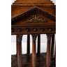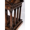 A walnut carpenter's model of a Corinthian colonnaded temple with a frieze of stars on the entablature and a gilt brass allegorical motif on the front. Each face is topped by a triangular pediment. In the centre of the roof emerges a stepped massing concealing a coffered ceiling.