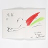 Marc Chagall (1887-1985) Le peintre à l'envol rouge et vert - 1975 Encre de Chine et pastel, signé, daté et dédicacé en bas à droite "Pour Charle [sic] / et Brigitte / 1975 Marc Chagall" 26,5 × 40,5 cm (les deux pages conjointes) Figure sur page de faux titre de l'ouvrage "Poèmes"- Cramer Editeur 1975 Un certificat d'authenticité du Comité Marc Chagall sera remis à l'acquéreur Provenance : Collection B & C Marq