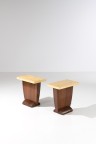 (1883-1962) for Maison Dominique (publisher) Pair of side tables Wood and parchment Stamp on the reverse 'Dominique Paris' Model created around 1928-1929 H 59.5 × L 57.5 × P 33 cm