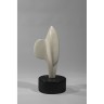 Marbre blanc cassé du Portugal reposant sur un socle en marbre noir