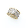 Mario BUCCELLATI, Italy 18k two tone yellow gold ring, lace imitation openwork, in the center a heart-cut diamond. Signed Ring size: 51 Gross weight: 7,8 g