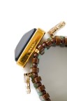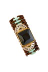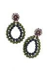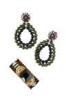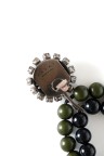 - Elastic-mounted bracelet with Art Deco-inspired motif in resin, gilded metal and rhinestones - Pair of earrings in blackened metal, rhinestones and two rows of resin balls Length: 11 cm