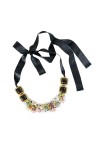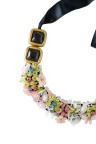 Dog collar with floral motif embroidered with sequins and glass beads on silk ribbon and resin elements