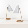 Mauri Almari (XX) K 11-15 Paire de lampes de table Laiton, cuir et métal laqué crème Edition Idman Date de création : vers 1950 H 43 × P 27 cm Bibliographie : Suomalaisia Valaisimia, Anna-Kaisa Huusko Pekka Järveläinen Muotoilun Aareet, Helsinki 2012 p. 68