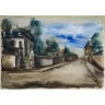 Maurice de Vlaminck (1876 - 1958) Entrée du bourg, Gouache sur papier Signée en bas à gauche Titrée au verso 44 x 52 cm Provenance : collection particulière, France Un duplicata du Comité Vlaminck (Wildenstein Institute) daté du 23 novembre 2015 sera remis à l'acquéreur