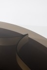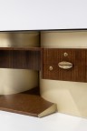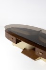 Walnut, melamine, brass, leather and glass