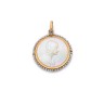 Médaille de baptême en nacre blanc gravé, entouré de perles probablement fines, monture en or jaune 18k (750‰). Poids brut : 2,6 g